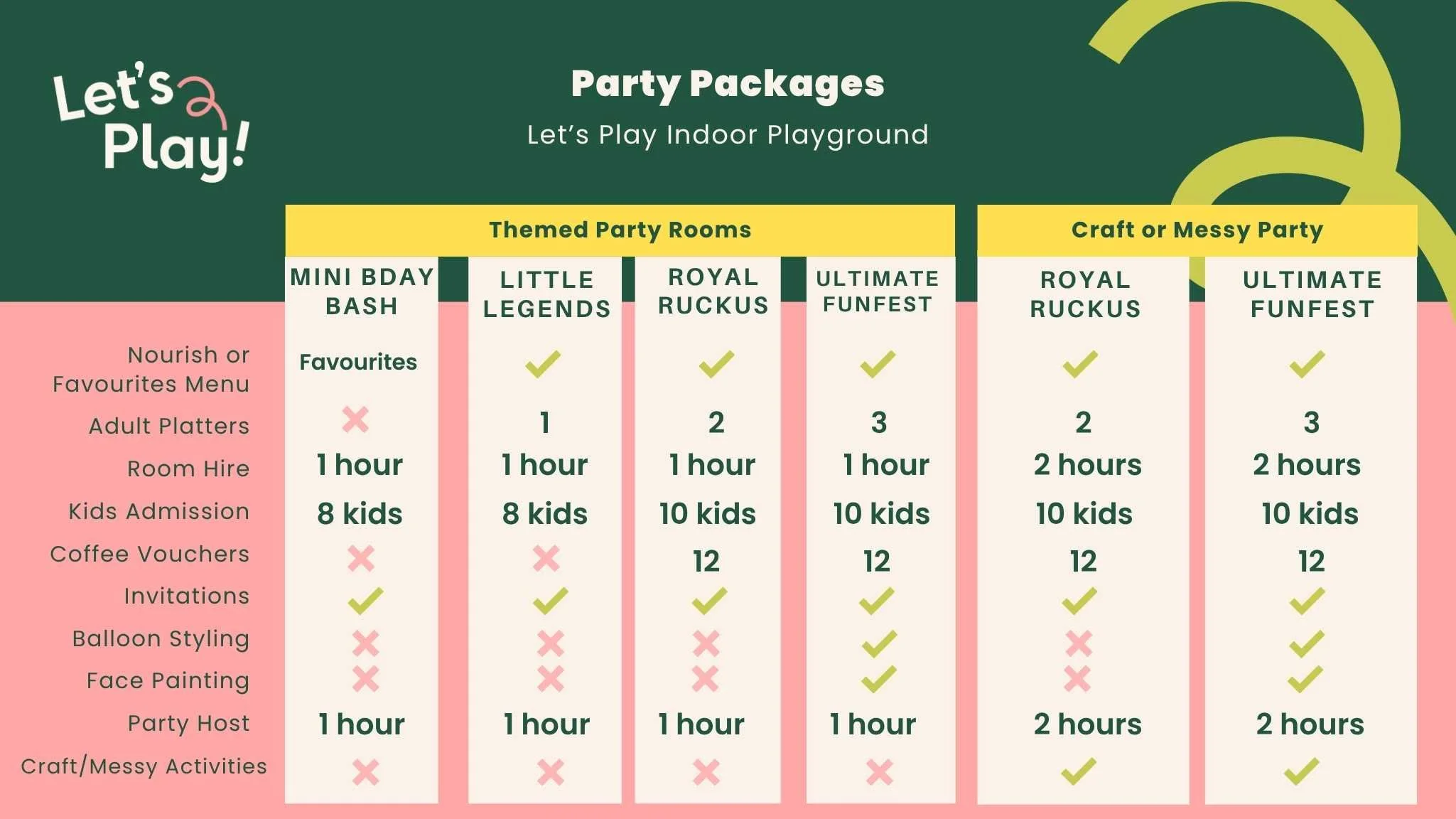 Choose your perfect party package, starting from $329